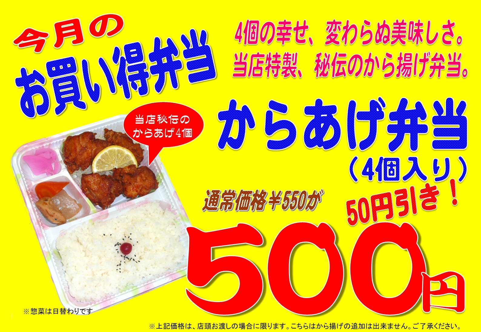 今月の【お買い得弁当】から揚げ弁当(4個入)📢